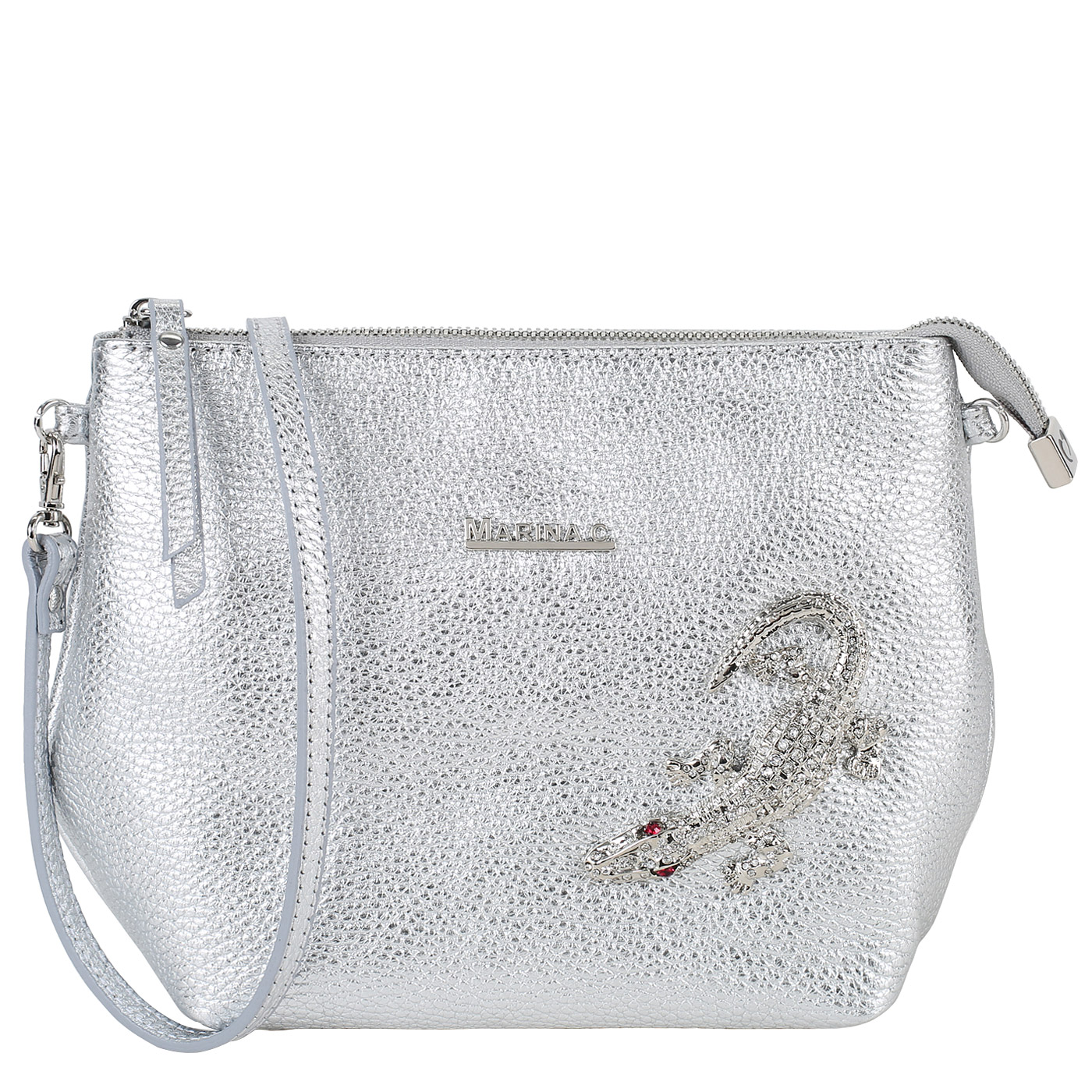 Сумка через плечо Marina Creazioni ACC.649GM 0760 6864_lam.argento_pc - 2000558657051 серебряный натуральная кожа 23 x 17 x 8 Цена 10968 руб. купить в интернет-магазине PanChemodan.ru в Кемерове